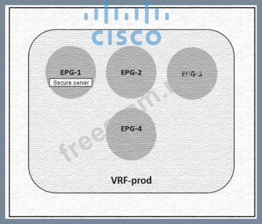 Refer to the exhibit. A secure server that provides services to EPG-2 must be placed in EPG-1. The remaining EPGs-EPG-2, EPG-3. and EPG-4-must communicate without any contracts. Which set of actions accomplishes this goal?