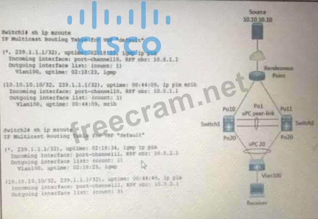 A host with a source address 10.10.10.10 sends traffic to multicast group 239.1.1.1. How do the vPC switches forward the multicast traffic?