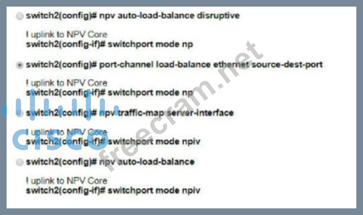 To provision a new uplink and increase the available bandwidth for the NPV enabled switch, the commands in Option A should be used. These commands will configure the additional uplink to the NPIV switch, thus addressing the bandwidth contention issues experienced by the servers.