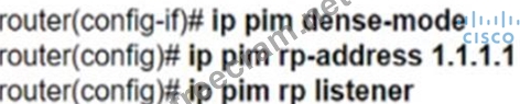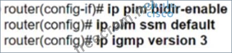 The configuration that meets the requirements for a media server to distribute streaming videos only to requesting clients, without propagating the video feed through shared trees if there are no requests, and supporting automatic discovery and announcement of RP-set information, is Option C. This option likely includes the use of Protocol Independent Multicast (PIM) in sparse mode, which is suitable for environments where multiple routers need to dynamically discover the Rendezvous Point (RP) for multicast groups. The configuration would also involve commands to enable Auto-RP for the automatic announcement and discovery of RPs. References: The explanation is based on the principles of multicast routing and PIM operation as described in Cisco Data Center Core Technologies documentation. For more detailed information, the "Implementing and Operating Cisco Data Center Core Technologies (DCCOR v1.2)" course material and the Cisco official documentation on multicast routing would be the appropriate references.