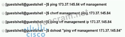 Question 68: An engineer implements a Python script inside a Cisco Bash s...