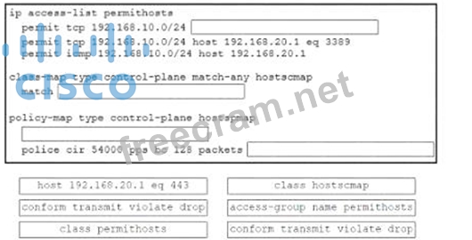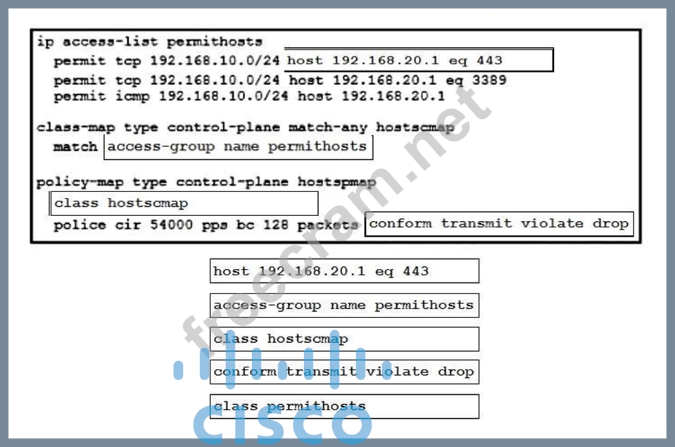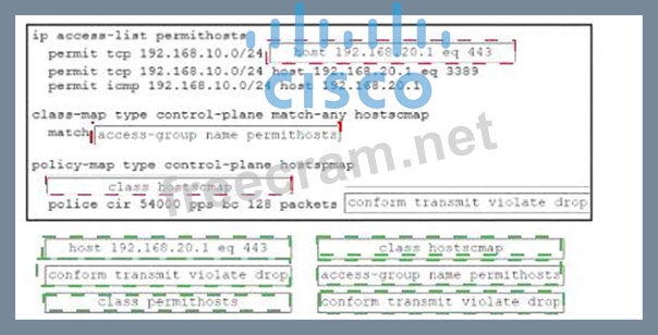 Question 39: An engineer must configure a control plane policy on a Cisco...