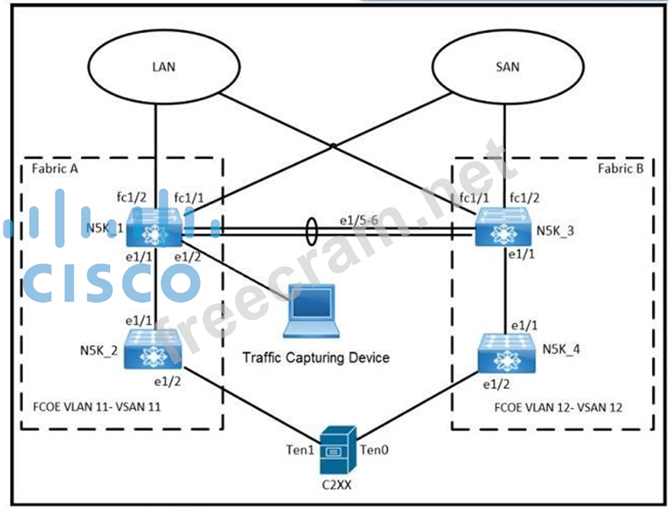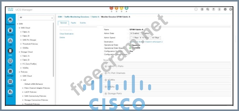 Refer to the exhibits An engineer must implement a SPAN session that sends a copy of all VLAN 11 traffic on N5K_1 to the Traffic Capturing Device The configuration that is presented is already applied to the Cisco UCS Manager. Which additional action meets the objective'?