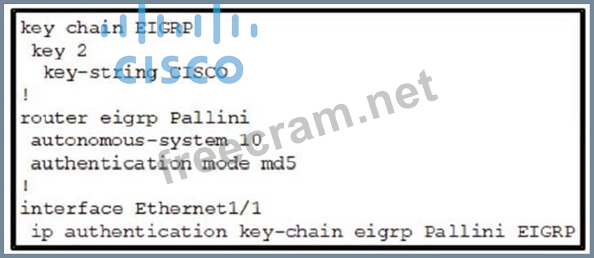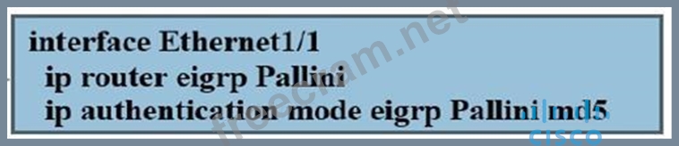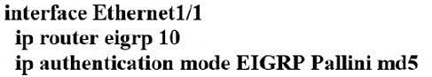 Two Cisco Nexus Series Switches use EIGRP between their Eth1/1 interfaces. The switches are configured to support EIGRP authentication. Which set of CLI commands must be used to establish EIGRP neighborship?