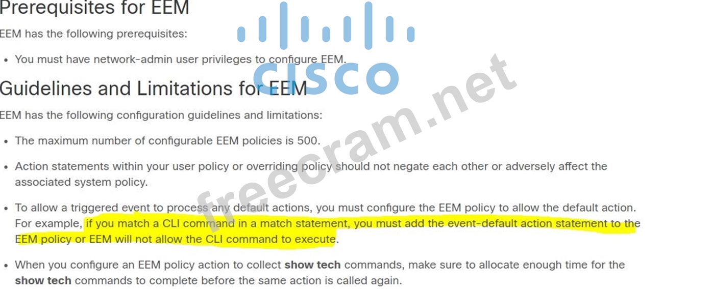 Question 222: AN engineer enters these commands while in EEM on a Cisco Ne...