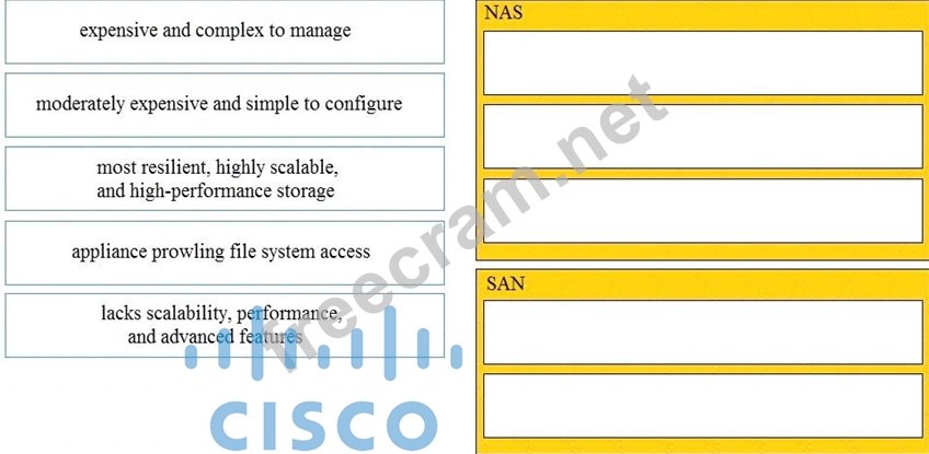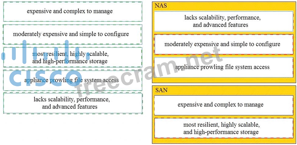 Question 11: Drag and drop the characteristics from the left onto the NAS...