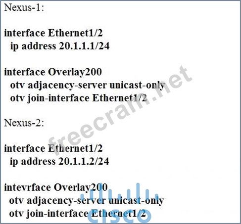 Option C is the correct adjacency server configuration to make two OTV edge devices located in the same site bring up the dual-site adjacency. The adjacency server is a logical entity that maintains the control plane information for the OTV overlay network. The adjacency server can be configured in unicast-only mode, which means that the OTV edge devices use unicast packets to exchange control plane information. To enable dual-site adjacency, which means that the OTV edge devices can form adjacencies with devices in the same site as well as devices in different sites, the adjacency server must be configured with the same IP address on both devices in the same site. The other options have incorrect configurations or IP addresses. For example, option A uses different IP addresses for the adjacency server on the same site, option B uses the same IP address for the adjacency server on different sites, and option D uses an invalid IP address for the adjacency server. References:
