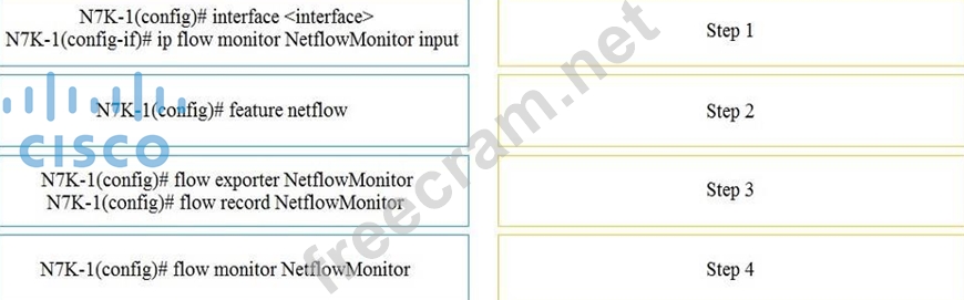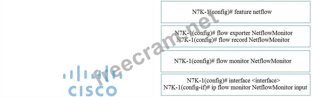 Drag and drop the NetFlow commands from the left into the correct order they must be entered on the right.