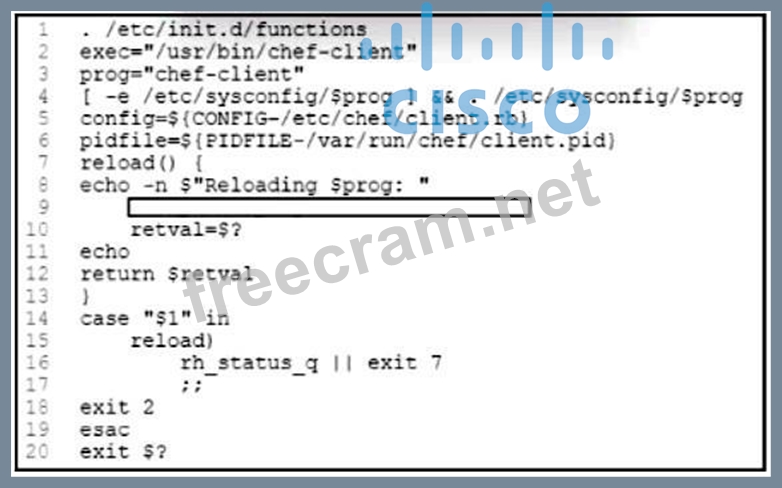 Refer to the exhibit. A developer must create a Bash script that performs a Chef Client reload in the event of a system reset.