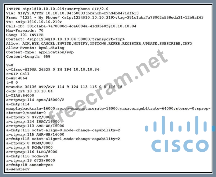 1 commentQuestion 156: Refer to the exhibit. (Exhibit) Which outgoing m-line SDP is...