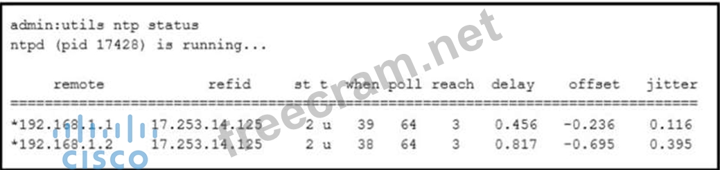 Question 25: After an engineer runs the ntils ntp status command on the C...
