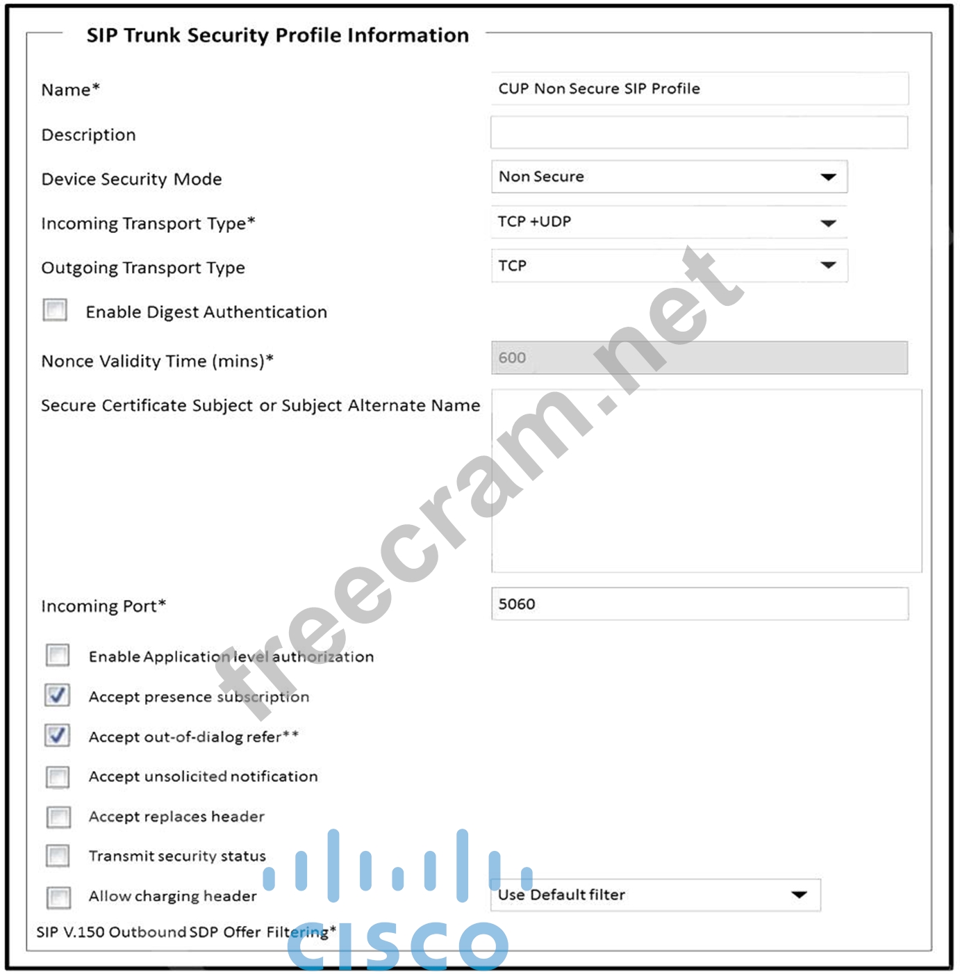 Question 43: What is required for Cisco UCM to accept SIP calls with a UR...
