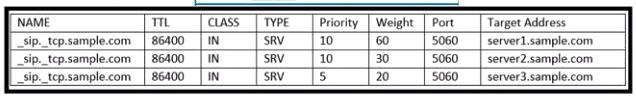 An administrator must fix the SRV records to ensure that server 1 .sample.com is always contacted first from the three servers. Which solution should the engineer apply to resolve this issue?