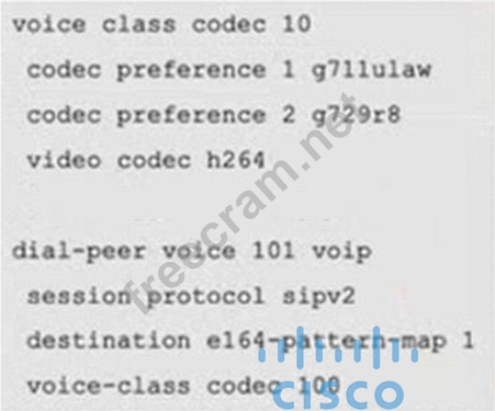 An engineer configures a Cisco Unified Border Element and must ensure that the codecs negotiated meet the ITSP requirements. The ITSP supports G.7llulaw and G.729 for audio and H.264 for video. The preferred voice codec is G.711. Which configuration meets this requirement?