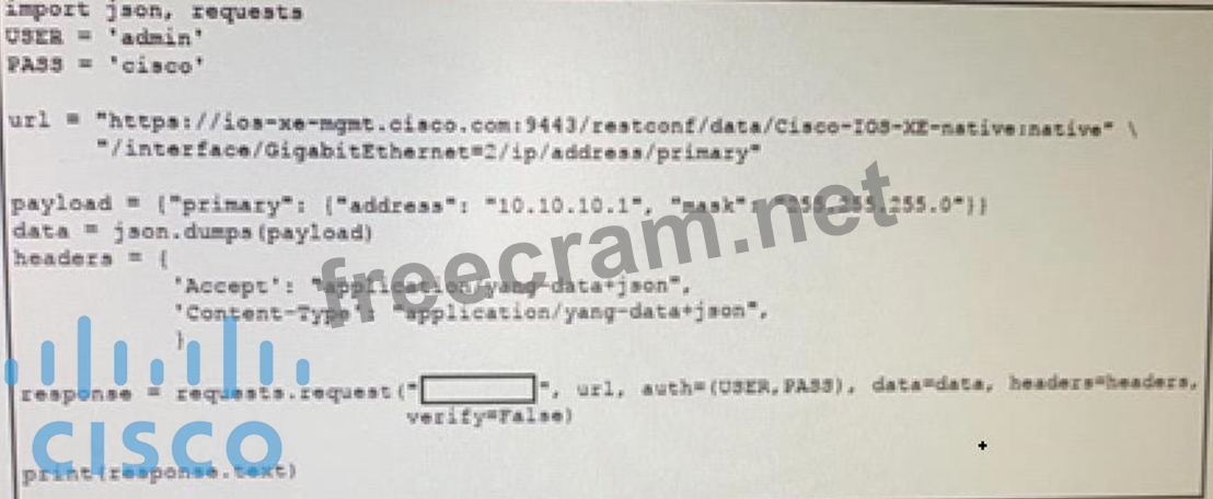 Question 49: A Python script must query the Cisco DNA center API for the ...