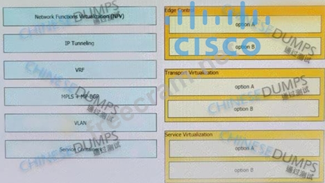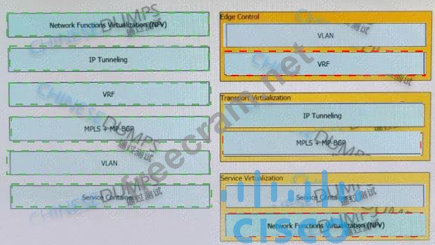 Drag and drop the end-to-end network virtualization elements from the left onto the correct network areas on the right.