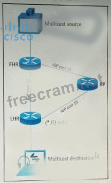 As part of a redesign project, you must predict multicast behavior What happens to the multicast traffic received on the shared tree (*,G), if it is received on the LHR interface indicated*?