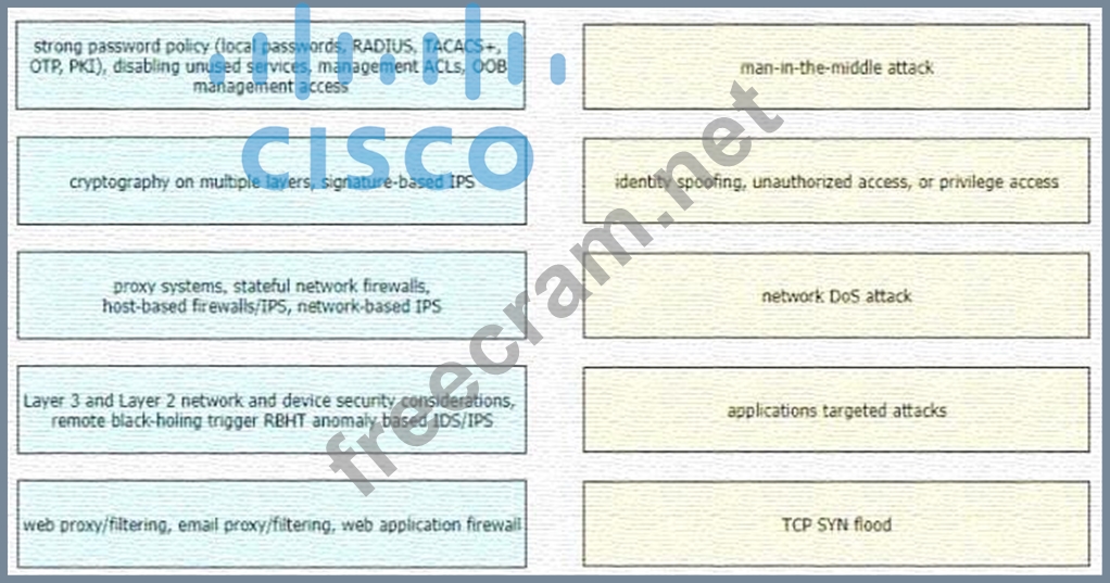 Drag and drop the correct mitigation methods from the left onto the corresponding types of attack on the right