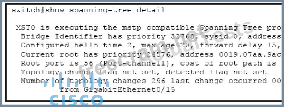 Question 56: Refer to the exhibit. 8 (Exhibit) All switches have default ...