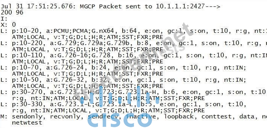 Question 204: Which message is used by a Cisco IOS MGCP gateway to send pe...