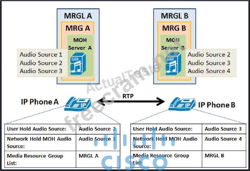 Which description of what will happen when the user of IP phone A presses the Hold soft key is true?