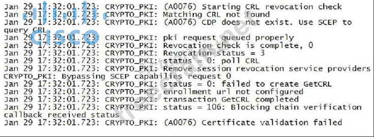 229 Refer to the exhibit. The public key infrastructure debugs are generated on a Cisco IOS VPN router for a failed certification validation on an incoming connection from an IP phone client. Which option is a possible solution for this problem?