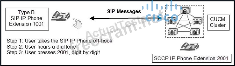 A user is going through a series of dialing steps on a SIP Type B IP phone (for example, a Cisco