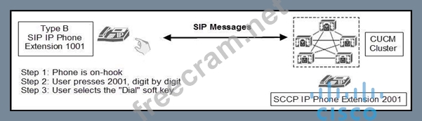 Explanation: Cisco Type B SIP Phones offer functionality based SIP INVITE Message. Every key the end user presses triggers an individual SIP message. The first event is communicated with a SIP INVITE, but subsequent messages use SIP NOTIFY messages. The SIP NOTIFY messages send KPML events corresponding to any buttons or soft keys pressed by the user. Cisco Type B SIP IP Phones with SIP dial rules operate in the same manner as Cisco Type A phones with dial rules.