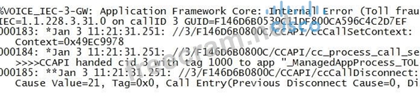Your customer sent you this debug output, captured on a Cisco IOS router (router A), to troubleshoot a problem where all H.323 calls that originate from another Cisco IOS router (router B) are being dropped almost immediately after arriving at router A.
