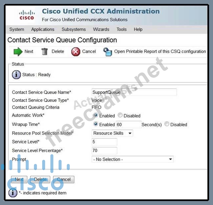 Question 80: A company that is using the Cisco Unified Contact Center Exp...