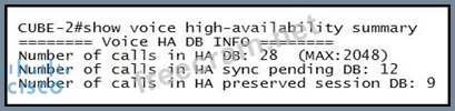 Explanation/Reference: Explanation: Total no of calls =28+12=40. So, native calls are =40-9=31. Explanation:http://www.cisco.com/c/en/us/ support/docs/voice-unified-communications/unifiedborder-ele ment/112095-cube-hsrp-config-00.html.