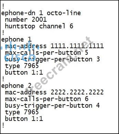 Question 225: Refer to the exhibit. (Exhibit) Which ephone-dn can join the...