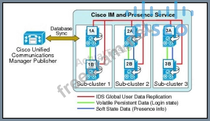 In this high-availability Cisco IM and Presence deployment with three subclusters, the first user is assigned to server 1A; the second user is assigned to server 2A; and the third user is assigned to server 3A.