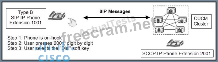 A user is going through a series of dialing steps on a SIP Type B IP phone (for example, a Cisco 7975) to call an SCCP IP phone. Both phones are registered to the same Cisco Unified Communications Manager cluster. Assuming the calling SIP phone is associated with a SIP Dial Rule with a pattern value of 2001, which statement about the call setup process of this call is true?