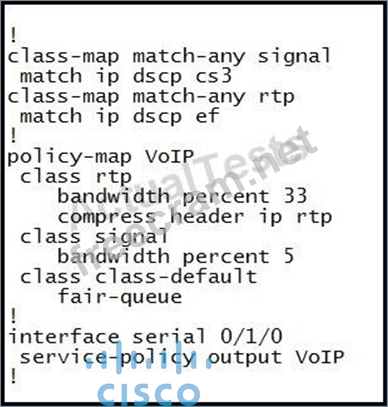 Assume that the serial interface link bandwidth is full T1. What is the maximum amount of bandwidth allowed for priority queuing of RTP packets with a DSCP value of EF?