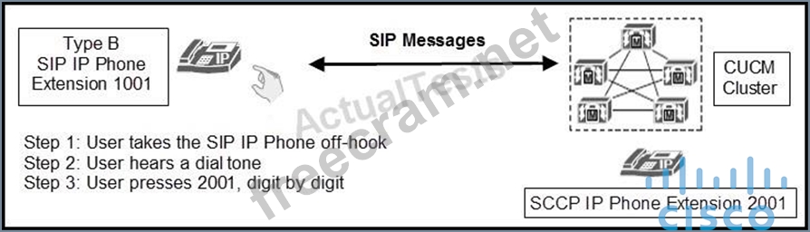 A user is going through a series of dialing steps on a SIP Type B IP phone (for example, a Cisco 7975) to call an SCCP IP phone. Both phones are registered to the same Cisco Unified Communications Manager cluster. Assuming the calling SIP phone is associated with a SIP dial rule with a pattern value of 2001, which statement about how digits are forwarded to Cisco Unified Communications Manager for further call processing is true?