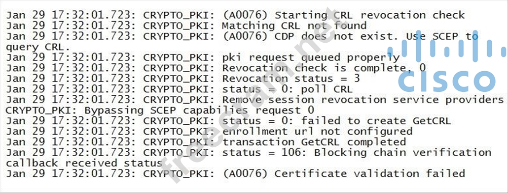 Explanation/Reference: When a certificate is issued, it is valid for a fixed period of time. Sometimes a CA revokes a certificate before this time period expires; for example, due to security concerns or a change of name or association. CAs periodically issues a signed list of revoked certificates. Enabling revocation checking forces the IOS router to check that the CA has not revoked a certificate every time it uses that certificate for authentication. When you enable revocation checking during the PKI certificate validation process, the router checks certificate revocation status. It can use either CRL checking or Online Certificate Status Protocol or both, with the second method you set in effect only when the first method returns an error, for example, that the server is unavailable. With CRL checking, the router retrieves, parses, and caches Certificate Revocation Lists, which provide a complete list of revoked certificates. OCSP offers a more scalable method of checking revocation status in that it localizes certificate status on a Validation Authority, which it queries for the status of a specific certificate.