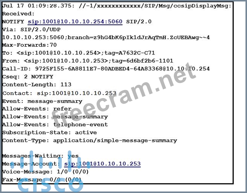 Question 278: Refer to the exhibit. (Exhibit) Which SIP message will trigg...