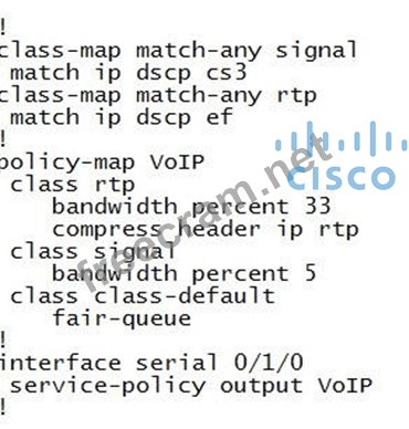 Assume that the serial interface link bandwidth is full T1. What is the maximum amount of bandwidth allowed for priority queuing of RTP packets with a DSCP value of EF?