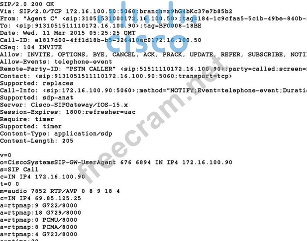 Question 89: Refer to the exhibit. (Exhibit) If this SIP call is initiate...