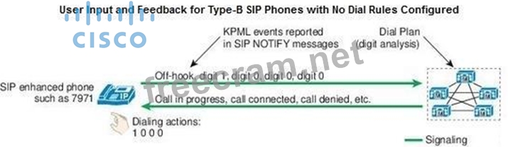 In contrast to Type-A IP phones running SIP without dial rules, Type-B SIP phones have no Dial key to indicate the end of user input. A user dialing 1000 would be provided call progress indication (either ringback tone or reorder tone) after dialing the last 0 and without having to press the Dial key. This behavior is consistent with the user interface on phones running the SCCP protocol.