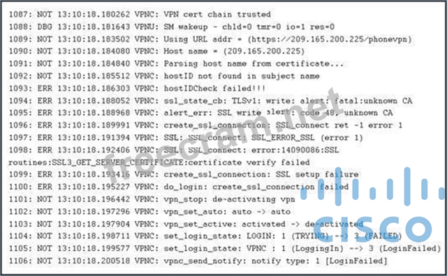 Question 219: Refer to the exhibit. A phone VPN failed to establish a VPN ...