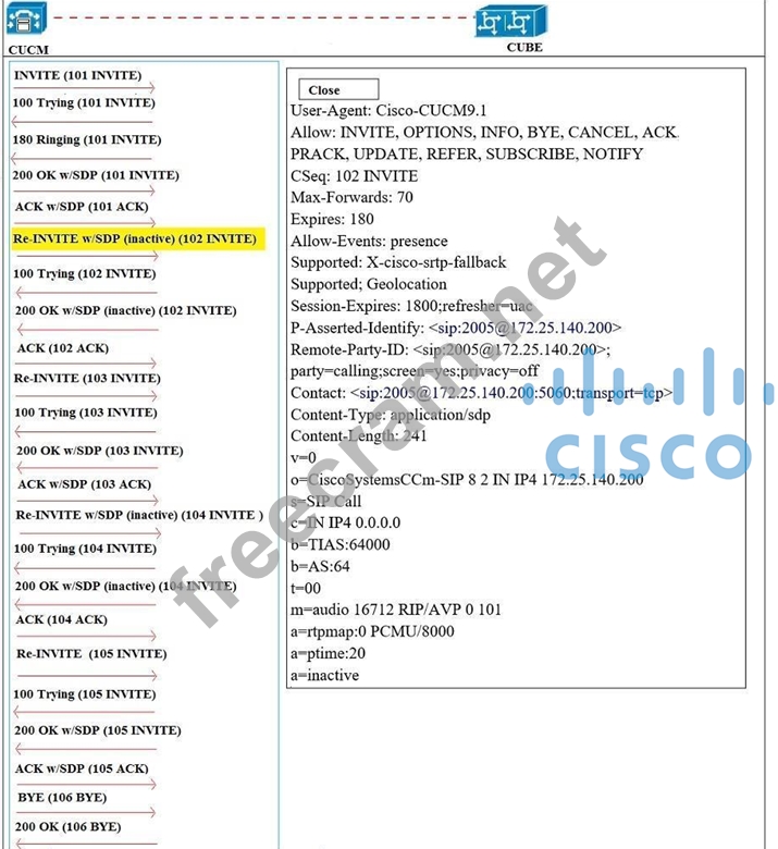 Question 177: Refer to the exhibit. If this SIP call is initiated using de...