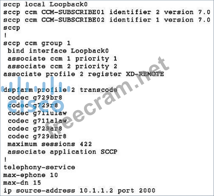 Refer to the Exhibit. An Engineer is troubleshooting transcoding issue in a remote branch office after a WAN outage. All IP phones can register to a CME in SRST 2900 ISR Router however, the users reported that calls disconnect after pressing the answer soft key.