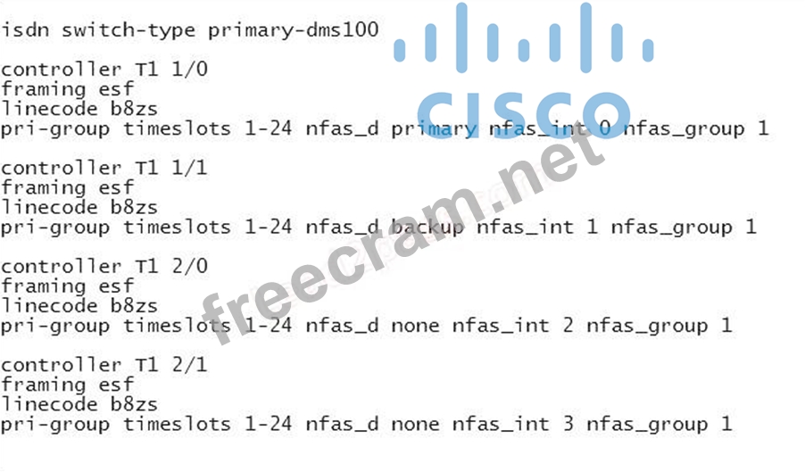 Refer to the exhibit. Assuming this NFAS-enabled T1 PRI configuration on a Cisco IOS router is fully functional, what will the controller T1 1/1 D-channel status be in the output of the show isdn status command?