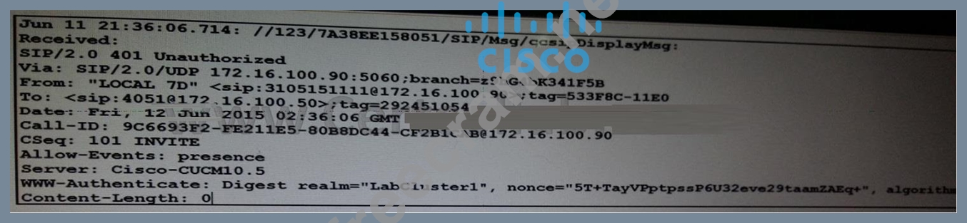 Refer to the exhibit. Network administrator is implementing SIP trunk digest authentication.
