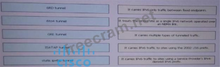 Drag and drop each IPv6 tunnelign mechanism form the left onto the correct characteristic on the right