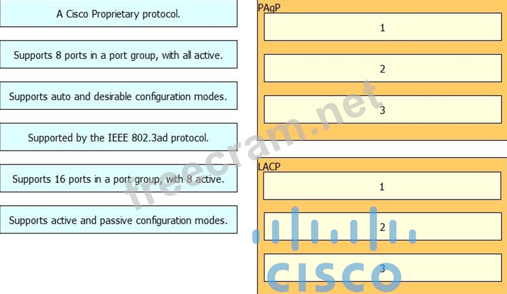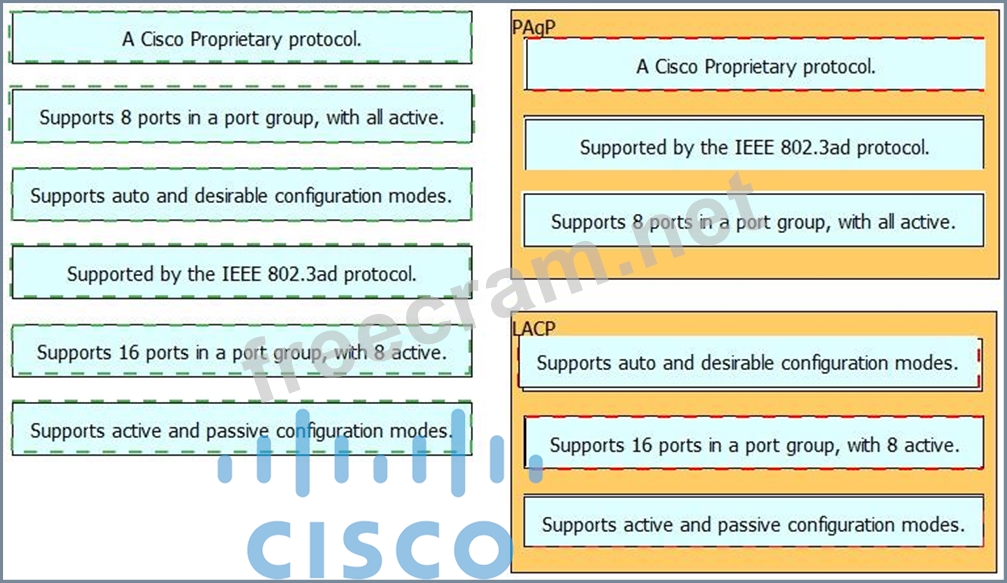 Drag and drop each statement about EtherChannel protocols on the left to the matching