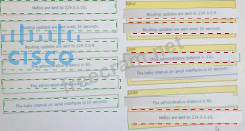 Drag and Drop each statement about routing protocols from the left onto the correct routing protocol on the light