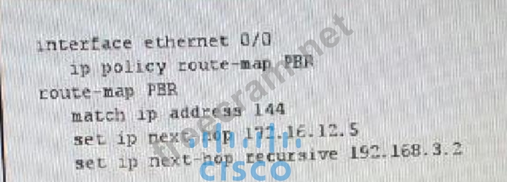 Which statement correctly describes how a router with this configuration treats packets that matches access-list 144 if it does not know a path to 172.16.12.5, and does not know a path 192.168.3.2?